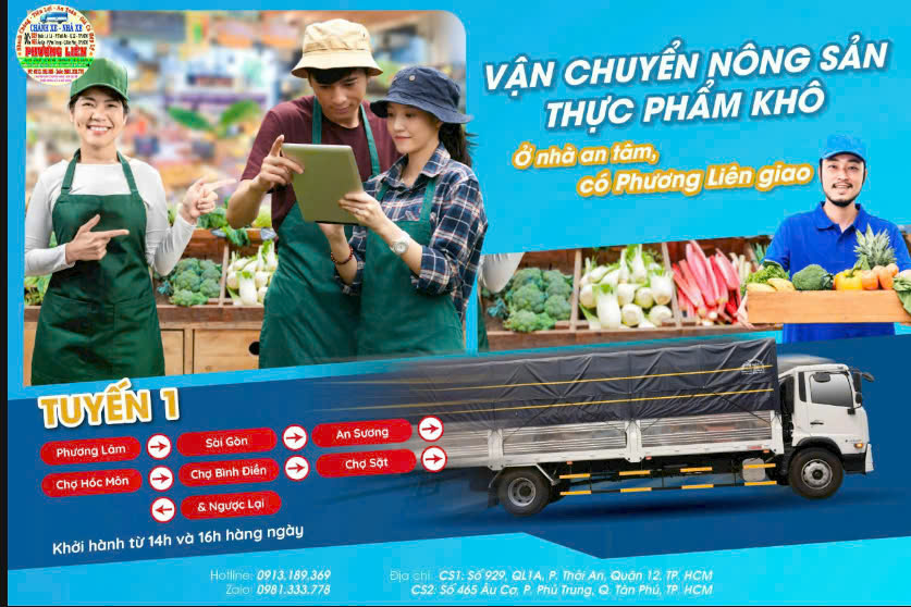 Quý khách có nhu cầu vận chuyển nông sản, gửi hàng nông sản đến các chợ đầu mối hoặc các dịch vụ vận tải khác, vui lòng liên hệ với Nhà Xe Phương liên - Chành Xe Phương Liên để được tư vấn và báo giá tốt nhất.